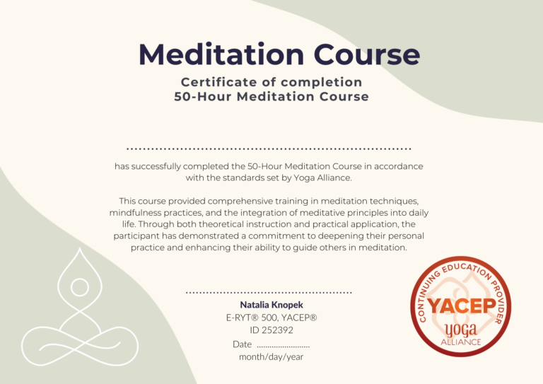 Kurs medytacji - Certyfikat Yoga Alliance